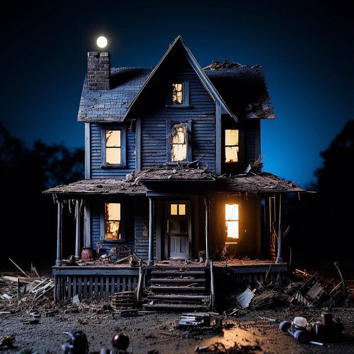 A full size, ramshackle country house in the night can be quite scary, but a miniature, ramshackle country house at night time is totally adorable. What murderous happenings could be occurring inside? Are the dolls attacking each other? Is a small fire ablaze? Scary and charming… and someone needs to clean up that yard!