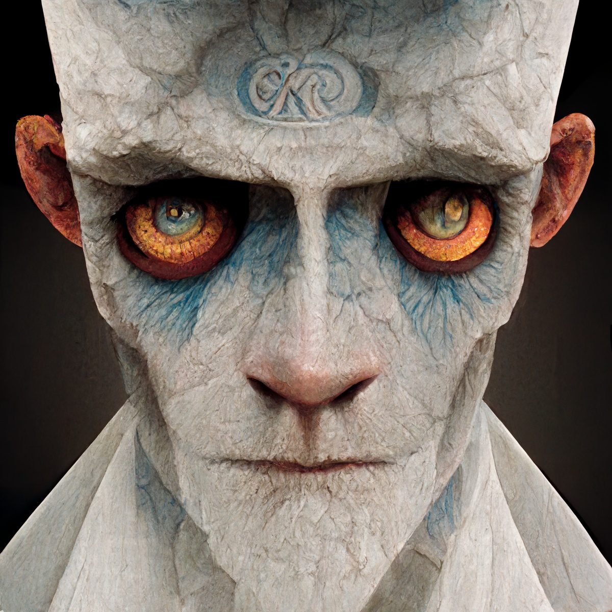 Ghostly Paper Mache Spirit Man With An Intense Stare And Soulful Eyes